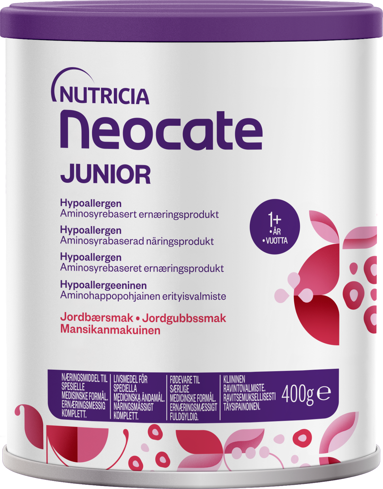 Neocate Junior er en komplett, hypoallergent, aminosyrebasert ernæringsprodukt til kostbehandling av barn fra 1 år med kumelkallergi, multivareallergi og andre tilstander der en elementalkost er indikert.